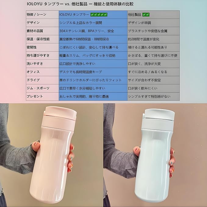 4、タンブラー 蓋付き こぼれない:蓋付きのデザインは、衛生的な開閉ができるフタ、片手で簡単に操作可能です、飲まない時はフタを閉めて、ホコリが入らないようにできます。蓋の開閉がスムーズなので、お手入れも簡単!注:本機をバッグなどに入れるときは、垂直に置いてください。 また、液漏れを防ぐため、蓋がしっかり閉まっていることを確認してください。