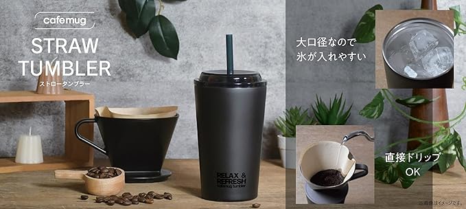 パール金属 タンブラー マグ ボトル カップ コップ 300ml Mサイズ ストロー付 真空断熱 保冷 ドリップ コーヒー 広口 ブラック カフェマグ ストロータンブラー HB-6778