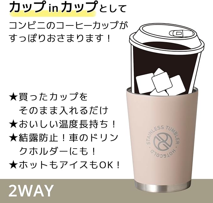 OGR ステンレス タンブラー コンビニ コーヒーカップ 450ml 真空 保温 保冷 マグカップ ブラウン