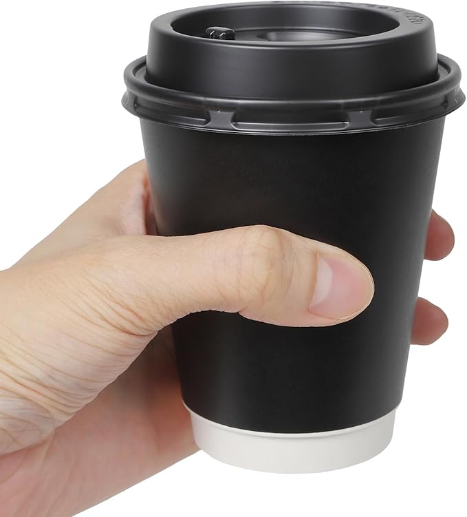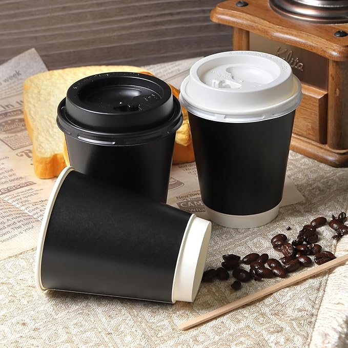 【50個セット 260ml 日本製】 東罐興業 断熱 紙コップ テイクアウト用 専用蓋付 SINC-260S (ブラック(リフトアップリッド))