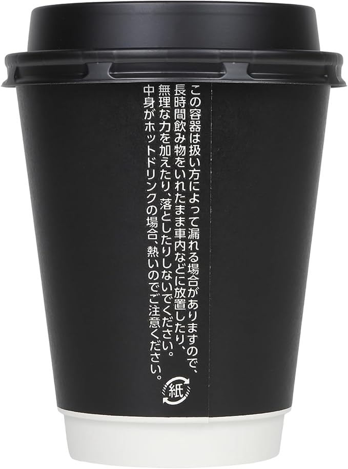 紙製スリーブを装着しエアー層を形成しています。持った時すべりにくく断熱性に優れた新感覚の紙コップです。安心の日本メーカー東罐興業製(トーカン)。多くのコンビニやカフェなどでも採用されています。ブラックの高級感あるルックスなのでホテルのウェルカムドリンク用・ビッフェのドリンク用などホテルユースの引き合いが多いお品です。