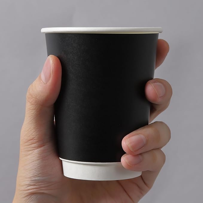 断熱性エアーウォール紙コップ・スペシャリティ飲料向け断熱紙コップ:紙製スリーブを装着しエアー層を形成しています。持った時すべりにくく断熱性に優れた新感覚の紙コップです。安心の日本メーカー東罐興業製(トーカン)。多くのコンビニやカフェなどでも採用されています。ブラックの高級感あるルックスなのでホテルのウェルカムドリンク用・ビッフェのドリンク用などホテルユースの引き合いが多いお品です。