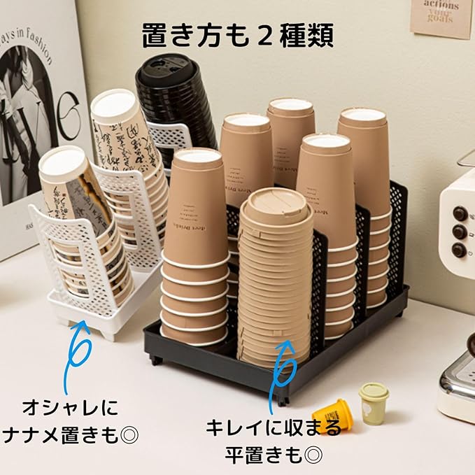 【コーヒー専門店おススメ】Modest Joy カップホルダー 紙コップホルダー カップディスペンサー カップスタンド グラスラックコーヒーカップ おしゃれ 大容量 平置き ナナメ置き インテリア バリエーションあり (黒, 大)