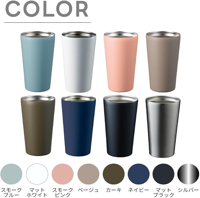 人気のサーモタンブラーの550mlタイプです。真空二層構造で保冷保温機能があるため、長時間適温で飲み物を楽しむことができます。500ml缶の容量を注ぐことができ、コンビニなどのラージサイズテイクアウトカップのドリンクホルダーとしてもお使いいただけます。錆びにくく匂いもつきにくいステンレスの素材を使用しており、使い勝手が良いのも魅力の一つです。錆びにくく、匂い移りもしにくいステンレス素材を使用。普段使いはもちろん、アウトドアやオフィスでも大活躍間違いなし。カラーバリエーションも豊富で、推し活グッズとしても!