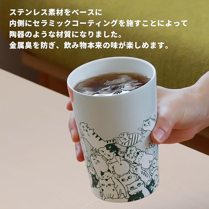 小倉陶器 ステンレス キープ タンブラー 450ml 保温 保冷 コンビニコーヒー 真空 断熱 ホームオフィス セラミック シンジカトウ CAT HILL グレー