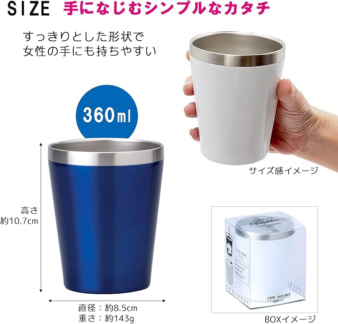 小倉陶器 真空断熱 ステンレスタンブラー 360ml 保温 保冷 二重構造 コンビニコーヒーカップ マグ (ブルー) 約φ8.5 h10.7cm/約360ml