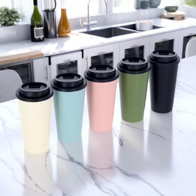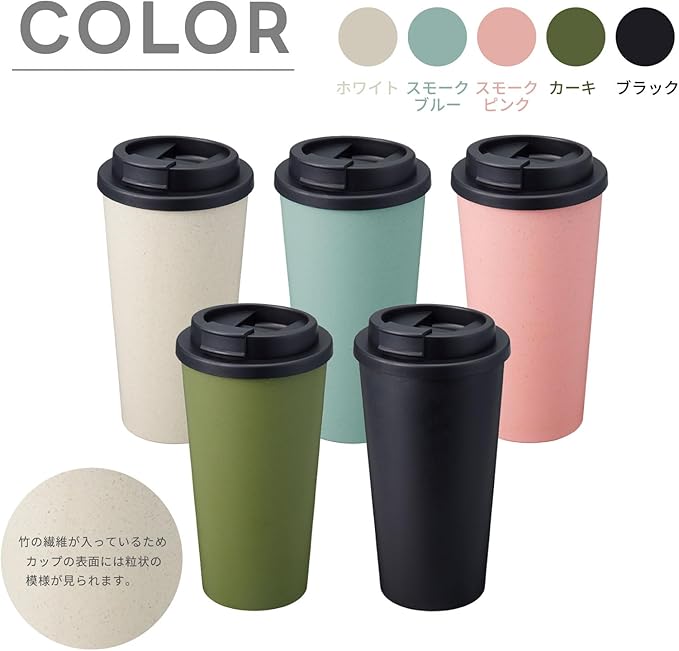 バンブーファイバー タンブラー 480ml | バンブー コーヒーカップ コンビニカップ プラスチック 軽量 割れない 携帯マグ 蓋付き 持ち運び 直接ドリップ (ホワイト)