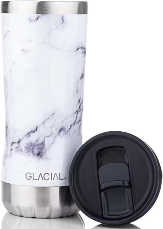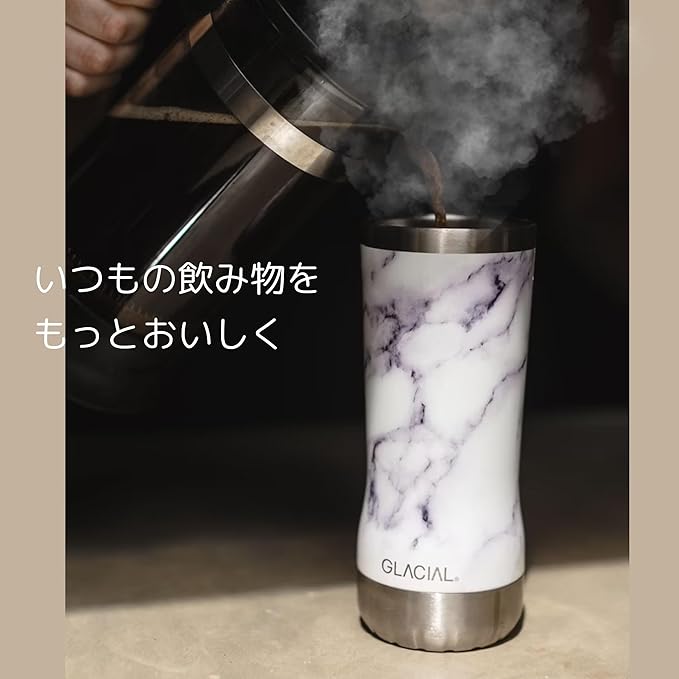 GLACIAL タンブラー 350ml 真空断熱 ステンレス マグカップ 保温 保冷 フタ付き 北欧デザイン ギフト対応 ホワイトマーブル