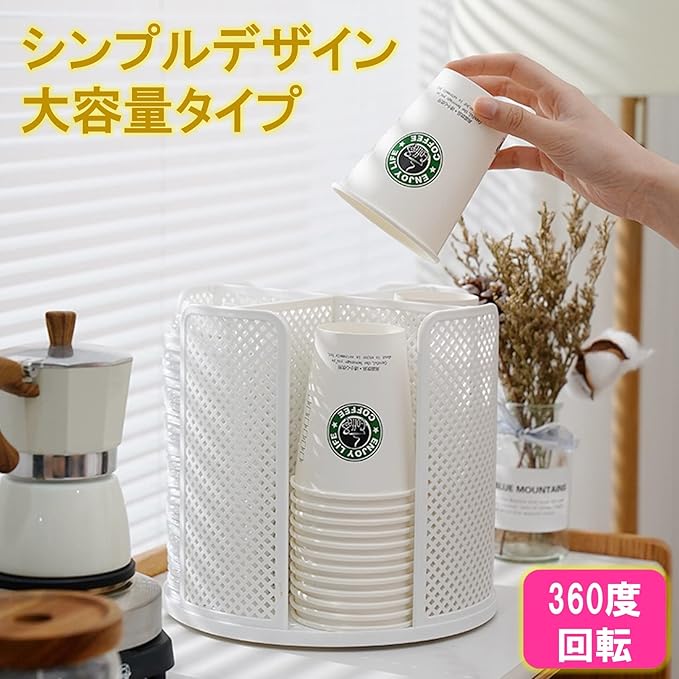 NOELAMOUR 紙コップホルダー 360 回転 紙コップスタンド カップディスペンサー 大容量 (ホワイト)