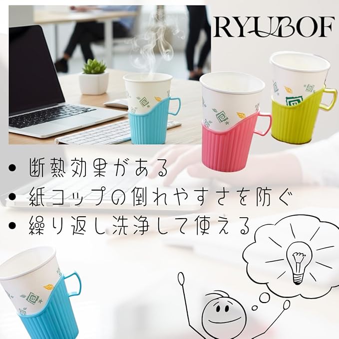 【便利な紙コップホルダー】オフィスやイベントで活躍する、パステルカラーの紙コップホルダーです。ホットドリンクの熱さから手を守り、飲みやすさを向上させます。