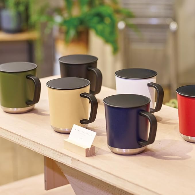 表面がざらっとしており、マニッシュなドリンクウェアです。 ホコリよけのフタが付属していますので、保温・保冷効果キープしたままホコリなどのゴミが入るのを防いでくれます。 色展開はブラック・ネイビー・カーキ・レッド・ベージュ・ホワイトの計6色。