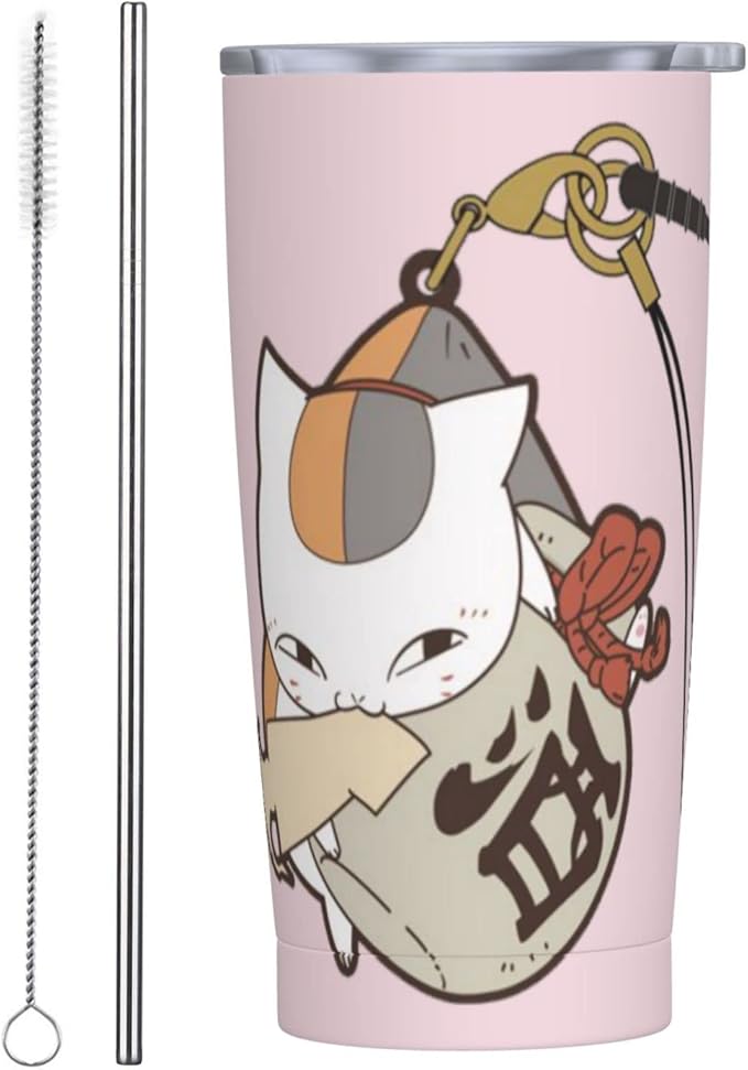 夏目友人帳 真空断熱タンブラー ニャンコ先生 コーヒーカップ 600ml ステンレス 蓋付き ストロー付き マグカップ 保温保冷 水筒 マグボトル 持ち運び便利 直飲み 漏れ防止 二重構造 コンビニマグ 車載用 炭酸対応 可愛い おしゃれ 誕生日 カップル プレゼント アウトドア 遠足 登山 キャンプ 女の子 男の子 ギフトボックス入り J105