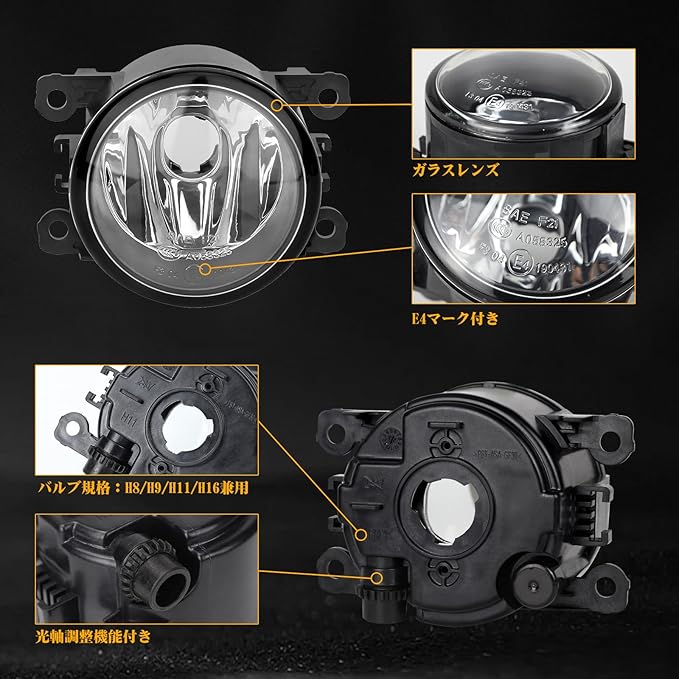 OPPLIGHT フォグランプ ユニット 交換用 補修 後つけ ガラスレンズ 光軸調整付き 車検対応 汎用品 デイズ NV350キャラバン エルグランドE52 ワゴンR ジムニー レヴォーグ デリカ タントカスタム N-WGNカスタムなどに適合 純正形状 純正交換 加工不要 熱に強い 防塵防水 適合バルブ: H16 H11 H9 H8 2年保証 左右セット