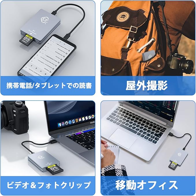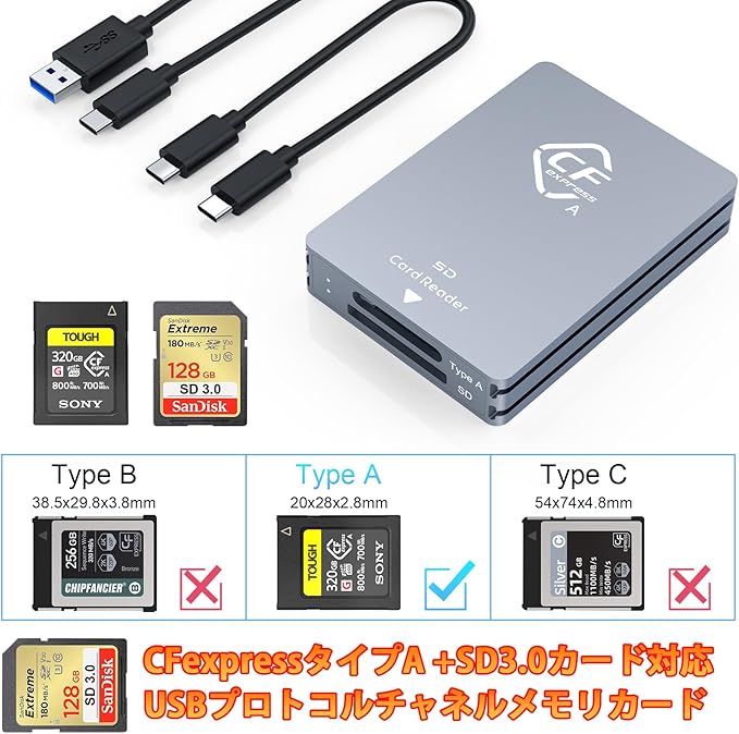 ✅【CFexpress Aメモリーカード専用設計】本カードリーダーはCFexpress(タイプA)メモリーカード専用に開発されており、写真や動画の高速転送に最適。CFexpressカードを使用するクリエイターやカメラ愛好家にとって、信頼できる便利なアイテムです。