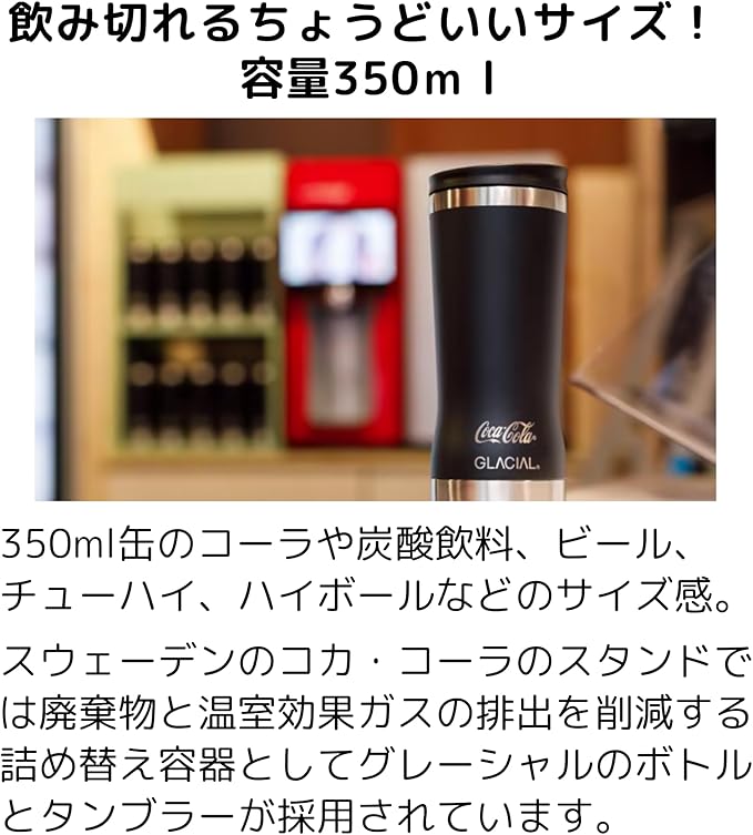 GLACIAL タンブラー 350ml 真空断熱 ステンレス マグカップ 保温 保冷 フタ付き 北欧デザイン ギフト対応 マットブラック