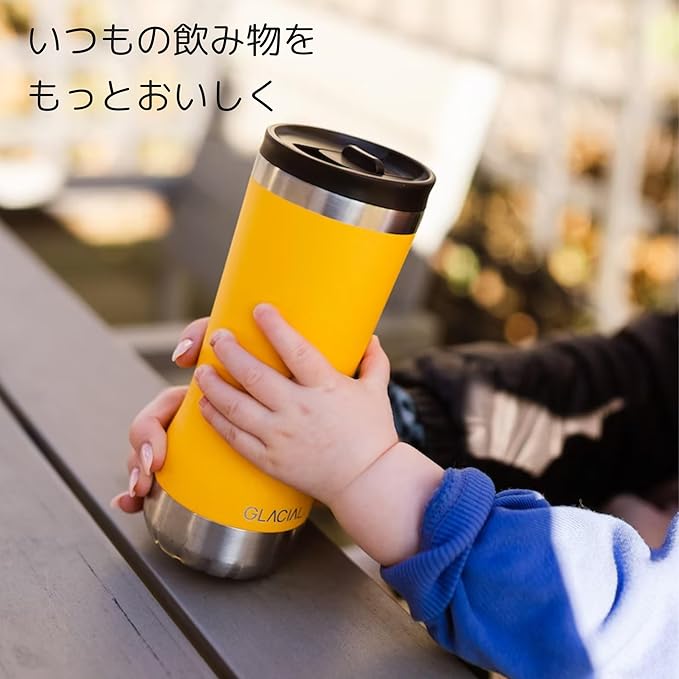 GLACIAL タンブラー 350ml 真空断熱 ステンレス マグカップ 保温 保冷 フタ付き 北欧デザイン ギフト対応 マットイエロー