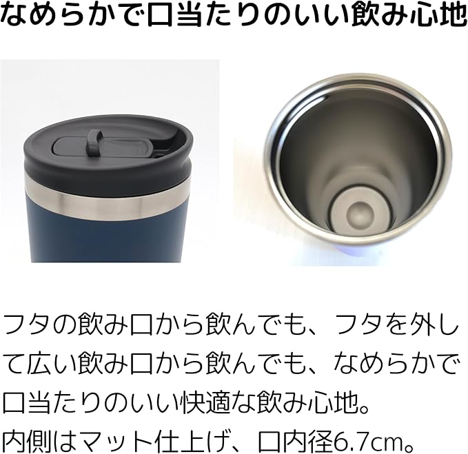 スライド開閉式の、スクリュータイプのフタ付きで、片手でもスマートに飲める真空断熱タンブラー。コンビニやカフェのS~Mサイズカップ(約250〜350ml)にぴったりの350ml容量。