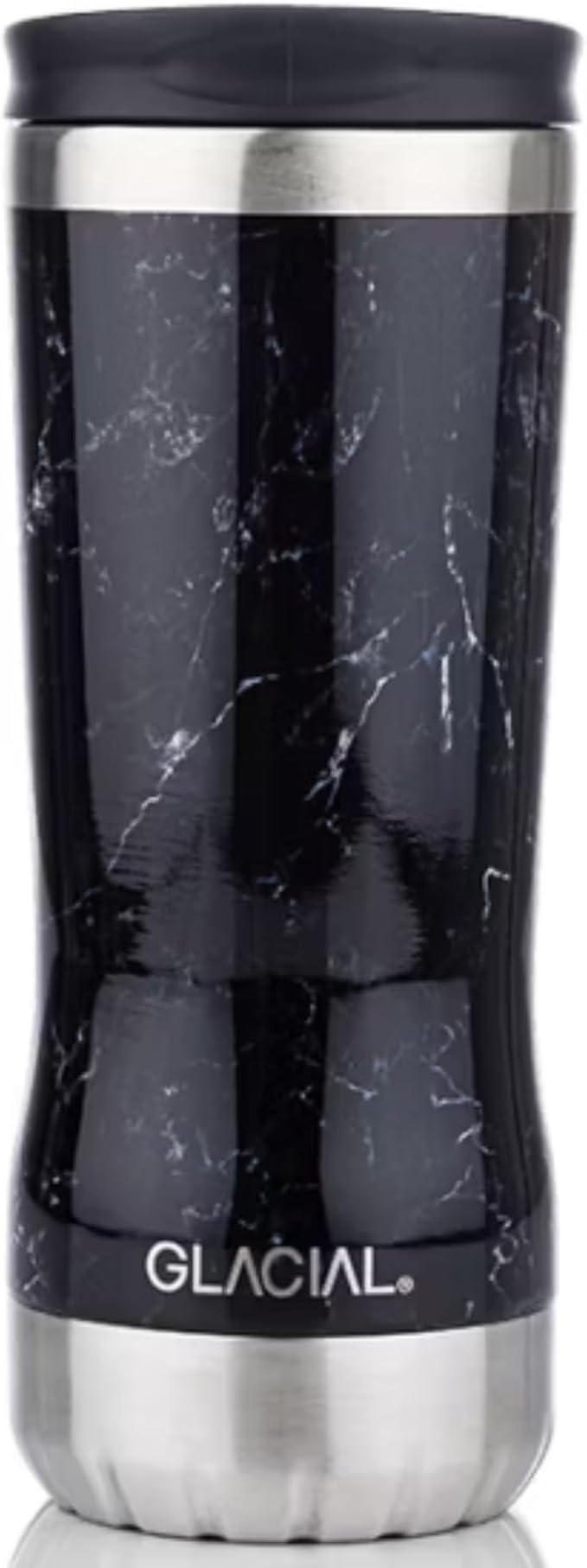 GLACIAL タンブラー 350ml 真空断熱 ステンレス マグカップ 保温 保冷 フタ付き 北欧デザイン ブラックマーブル