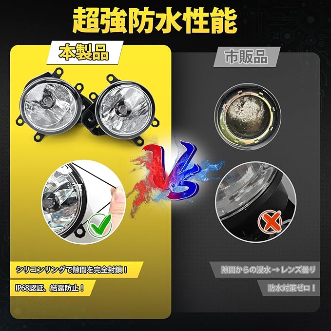 【トヨタ車汎用 フォグランプユニット】最近のトヨタ車はLED一体型フォグが主流。でも「暗いのにバルブ交換もできない…」と不満の声が続出中。そんなモヤモヤを解決するのが、Perraceの汎用フォグユニット。 ユニットごと交換すれば、H8/H11/H16対応バルブに自由にカスタム可能。明るさも色味も、あなた好みにアップグレードできます。さらに、水の侵入を防ぐ防水ラバーリングを2本標準装備。雨の日や洗車時のトラブルも未然に防ぎ、安心してお使いいただけます。