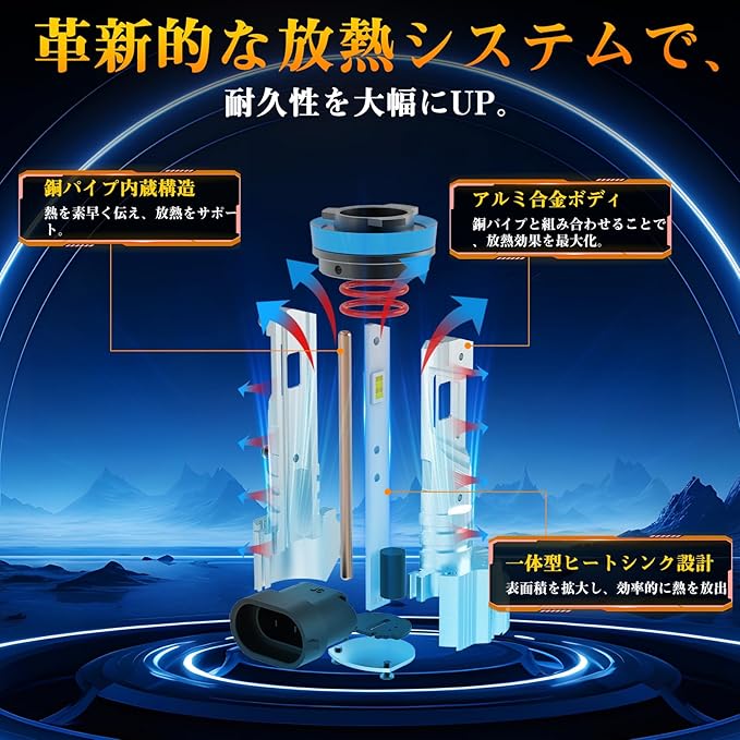 【銅製ヒートパイプ内蔵・静音ファンレス】こちらのh8 led フォグ・H11 LED フォグ・H16 LED フォグランプは、高品質アルミ合金ボディにより優れた放熱性能を発揮高導熱の銅製ヒートパイプを内蔵し、効率的に放熱。 ファンレス構造のため動作音がなく、長時間使用でも性能が安定。