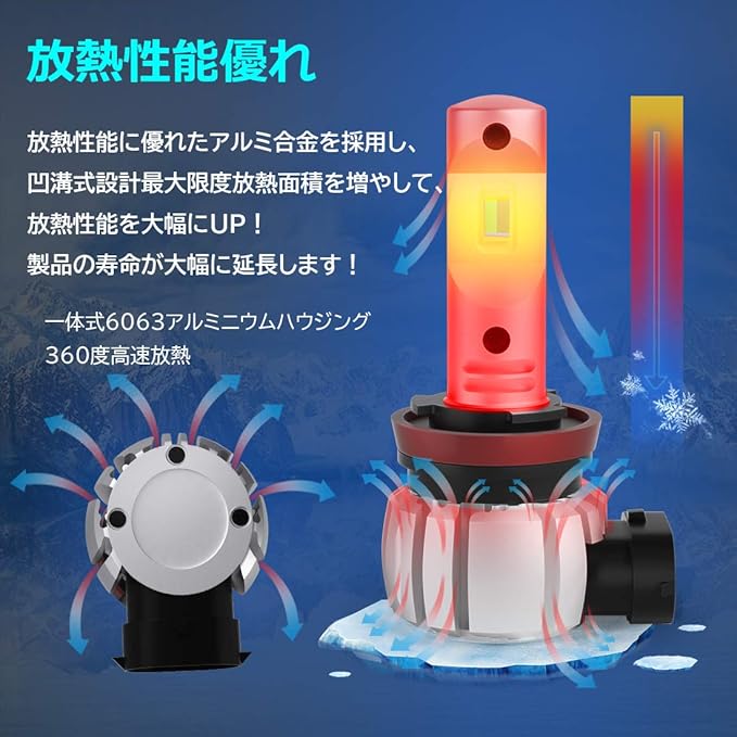 【ファンレス&長寿命】LEDフォグランプは散熱性能に優れたアルミ合金を採用し、ポン付けタイプがファンレスになりました!故障の原因となりやすいファンがありません。一体式航空アルミハウジングを採用し、凹溝式設計最大限度放熱面積を増やして、放熱性能を大幅にUP!放熱問題を解決した同時に正常な発光状態を維持できます。ファンがないため、騒音などは一切ありません。また高品質LEDチップを採用しているので、光減衰現象が発生しにくいです、それに、銅芯PCB基板を採用、放熱効率を大幅に向上!バルブの寿命を効果的に延長します。放熱性、省電力効果抜群の逸品です。