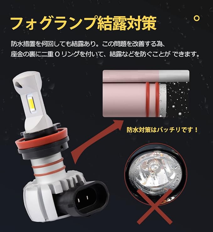 【高輝度&抜群の視認性】LEDフォグランプは両面高品質CSP 7035 LEDチップを採用して、均一・高効率の発光特徴を持って、普通のチップと比べ発光率はアップします。3000lmの明るさを実現しました。ハロゲンより50%省エネなのに明るさは純正ハロゲンを遥かに超えています。高輝度で、ハロゲンより大幅に視認性を高めています。夜間の走行が非常に楽になり、安全運転を確保します!