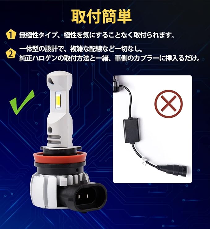 【車&トラック兼用&一年保証】ノイズキャンセラー内蔵、無極性設計、動作電圧はDC10V~60Vまでのワイドレンジになり、12V/24V兼用、大型車(バス、トラックなど)も取付可能です。定電流保護回路を搭載しているので、ハイブリッド車・EV車にも安心してご使用いただけます。1年保証が付いています。LEDヘッドライトは出荷前に全検品して、ランプ点灯確認済みでした。商品到着後、速やかに商品の状態をご確認ください。保証期間内に不具合、故障がございましたら、ご遠慮なくメールにてお問い合わせてください。交換または返金対応させていただきます。「アカウントサービス」→「注文履歴」→「出品者に連絡する」から、ご連絡をいただきますようお願い申し上げます。24時間以内にで迅速に対応させていただきます。