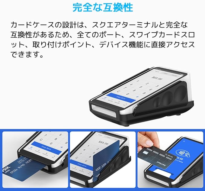 カードケースの設計は、スクエアターミナルと完全な互換性があるため、全てのポート、 スワイプカードスロット、取り付けポイント、デバイス機能に直接アクセスできます。