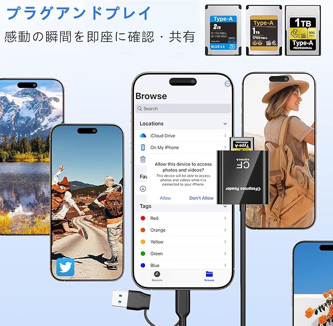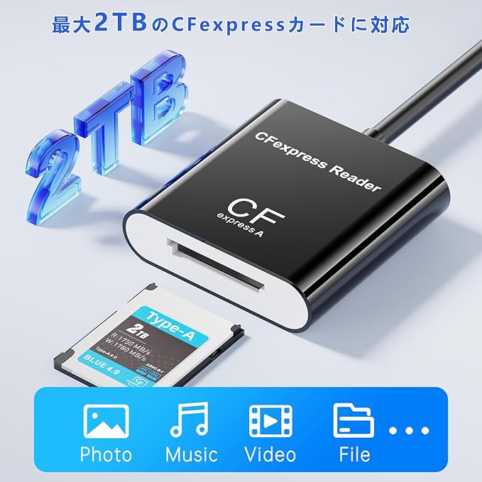 【2in1 CFexpress type a カードリーダー】写真撮影愛好家必携の高速データ転送アイテムこの CFexpress Type-A専用カードリーダーは、Type-A 規格カードに完全対応したスロットを搭載。一眼レフやミラーレスカメラで撮った高画質写真・動画のデータ読み取り・転送に最適です!さらにUSB-C/USB-A の 2 イン 1 デザインを採用し、パソコンやタブレットのポートタイプを問わず接続可能。撮影現場から自宅のデスクまで、手軽にデータを整理できるので、写真愛好家には欠かせない便利アイテムです。