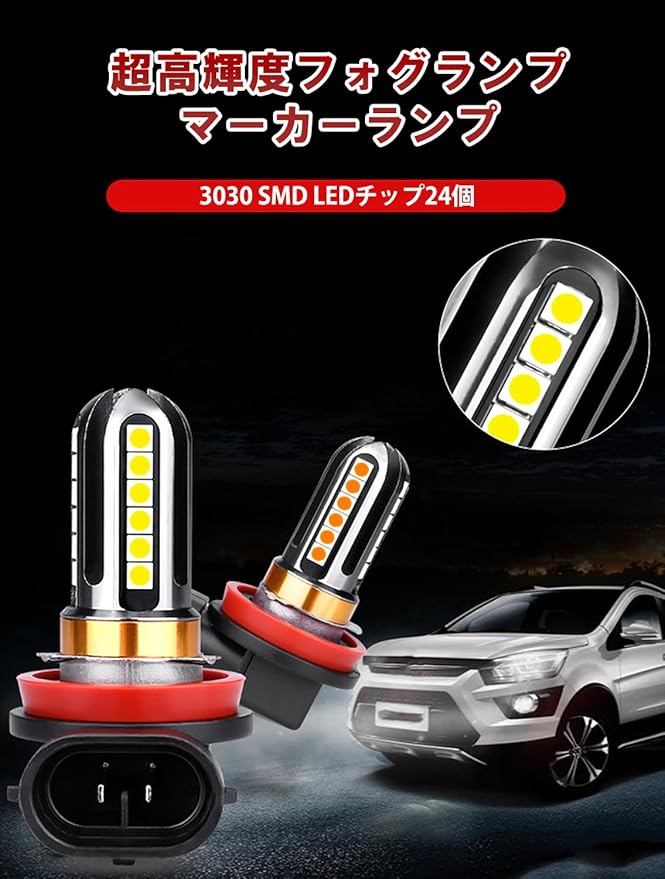 珍しいアンバー色のLEDバルブ アイデア次第でウィンカーやDRLなどに。H11 H8 H9 共通