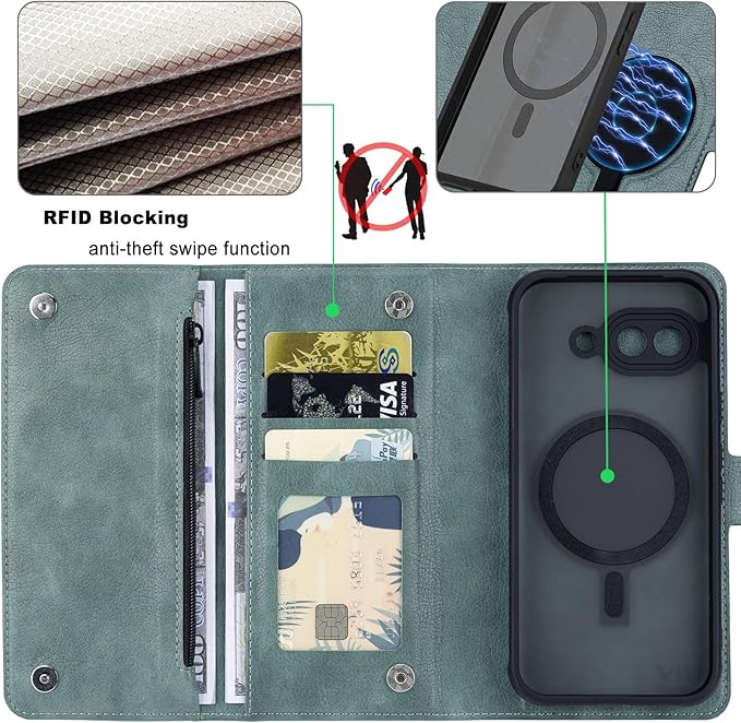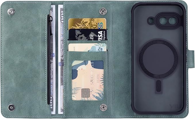 [Torske] グーグルピクセル9aケース 手帳型 Pixel9a ケース 収納ポケット付き 大容量 財布一体型 Google Pixel 9a ケース 手帳型 ハンドストラップ付き TPU取り外し可能 ピクセル9aケース Googleピクセル9aケース ワイヤレス充電 Google Pixel 9a カバー 小銭入れ 鍵入れ 三つ折り スマホケース 汗、指紋や擦り傷防止 (グリーン)