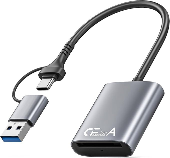 CFexpress Type Aカードリーダー, デュアルポートUSB 3.2 (Gen 2), USB-C&USB-A 2-in-1 Type A CFexpress 搭載, 10Gbps高速転送, アルミ合金製,即時認識機能,コンパクト設計 CFexpress Type-A专用