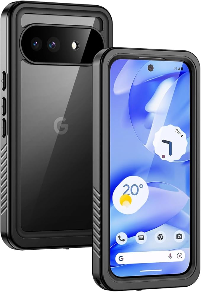 Lanhiem Google Pixel 9A 用 防水ケース 完全防水 IP68米軍規格 耐衝撃 滑り止め 防塵 防雪 ワイヤレス充電対応 水中保護カバー Google ピクセル 9A カバー ブラック