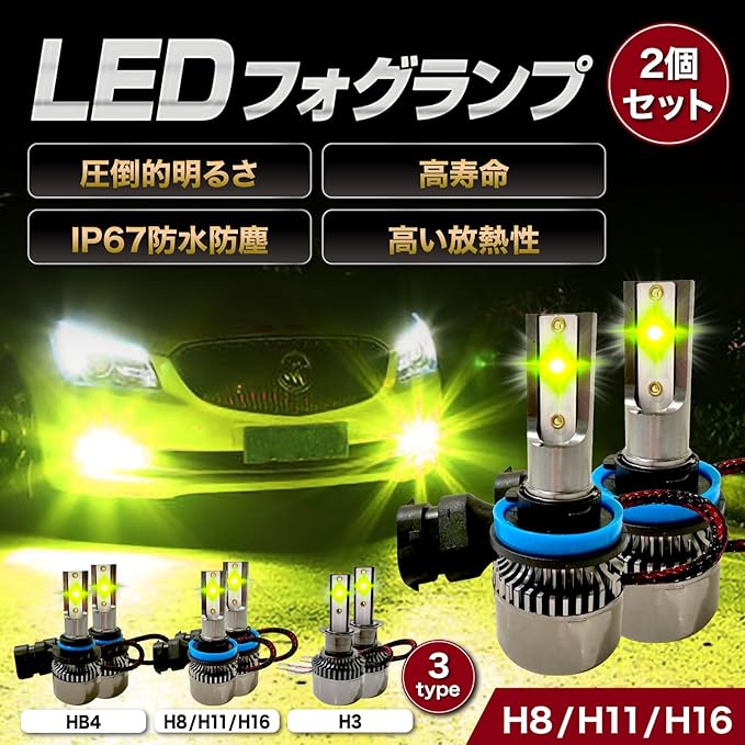 ✅【車を彩る新色登場】汎用タイプなので純正交換品として使える爆光LEDフォグランプ(バルブ)です。 カラーはグリーンアップルで12V車、24V車用になります。 グリーンアップルは別名、ライムグリーンやレモンイエローとも呼ばれ、緑と黄色の間の黄緑のような光となります。