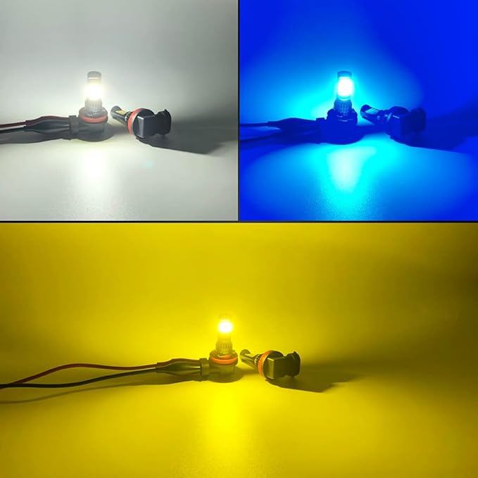 【3色発光!スイッチのON/OFFで簡単切替!】路面環境 気分によって簡単に色を変えられるLEDバルブ。一つのバルブに3種のLEDチップを採用し、新開発の切り替え制御機能を融合し、発光色を変更したい場合バルブを交換する必要がなく、フォグランプのスイッチをON->OFF->ON続けて操作して色を変更します。ライトスイッチでON ホワイト(白)→OFF→ONブルー(青)→OFF→ONイエロー(黄色)→OFF→ONホワイト(白)