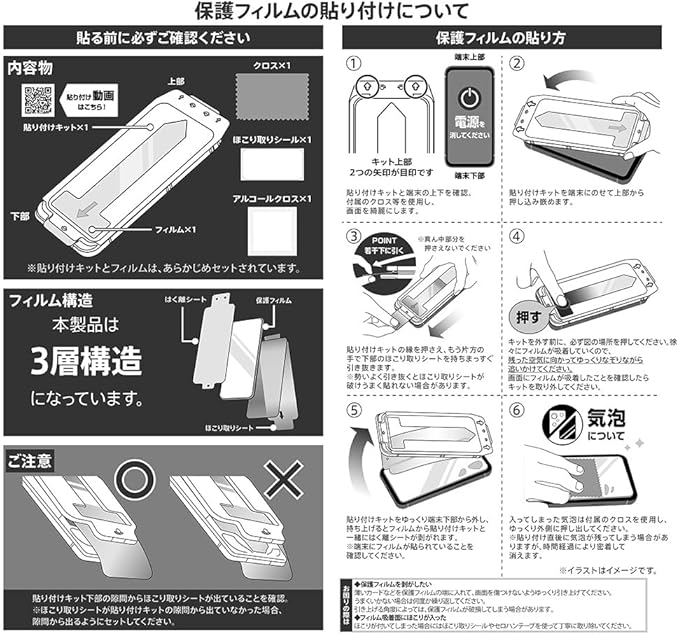 【気泡ゼロ】貼り付けが簡単で、気泡が入りにくい特殊吸着層を採用。