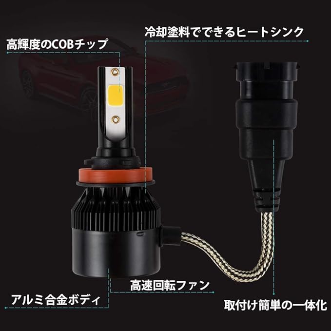 ④製品仕様:口金タイプ:H8 H9 H11 H16(国産車) / 消費電力(片側):24W / 入力電圧:DC 12V / ルーメン(片側):3600LM / 発光色:イエロー / 防水レベル:IP67 / チップ採用:COBチップ / 本体素材:アルミニウム合金