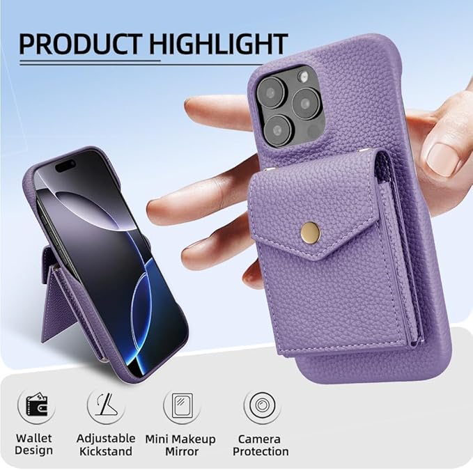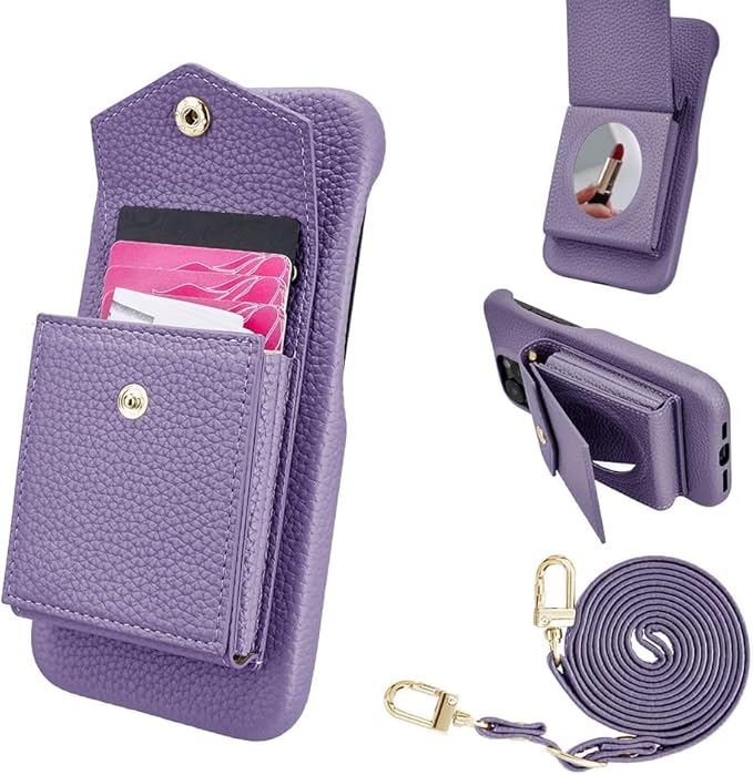 For Google Pixel 9A ケース 手帳型 背面 カード For グーグル ピクセル 9A ショルダー ミニメイクミラー付き 背面カード収納 縦+横置きスタンド機能 PUレザー 調整可能ショルダーベルト 耐衝撃 おしゃれ 財布型 パープル