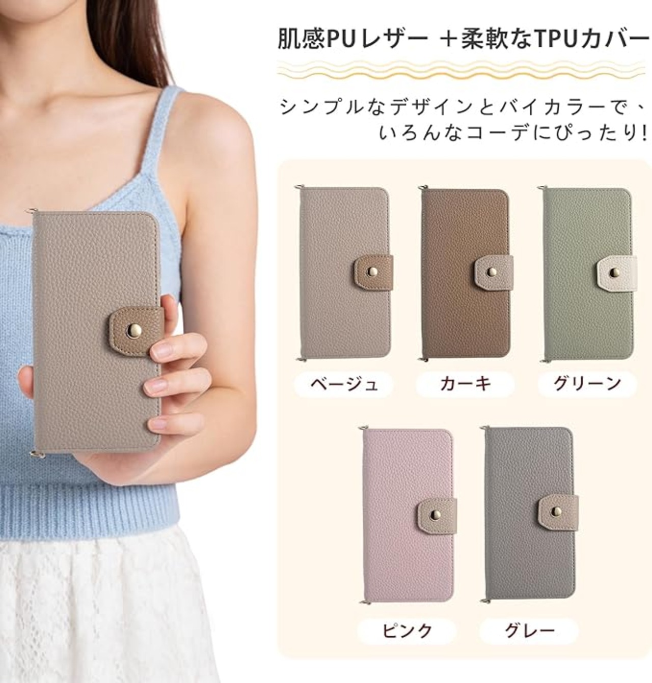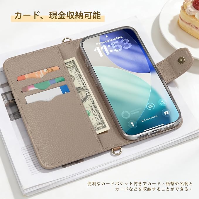 【高品質PUレザー&柔らかいTPU】肌感PUレザー +柔軟なTPUカバーと組み合わせ、厳選された革を採用しており、目に見える高級感と抜群な、肌のような手触り感、長時間使っても、手に汗が出てもケースは変なにおいが出てきません。インナーケースはソフトなTPU素材で、全面保護を与える同時に着脱しやすいです、スマホ本体への損傷の心配ありません、耐衝撃性。