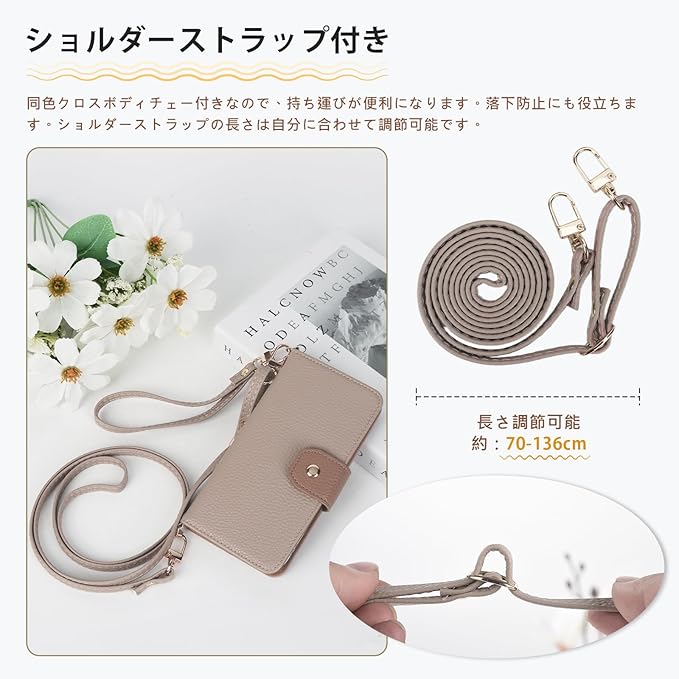 【長+短 2本 ストラップ付き】取り付けが可能なストラップが付き、持ち運びが便利になります。落下防止にも役立ちます。長さ調整可能のショルダーストラップで肩や首に掛けるとバッグ風になるのでおしゃれなです。犬の散歩の時、買い物の時にサッと携帯を使用できます、手荷物が多い時やアウトドアの時などにも使い勝手が抜群です、色々な場面で便利に使えます、特にポケットがない服が多い人にとってストラップ付きなのが一番いい選択です。