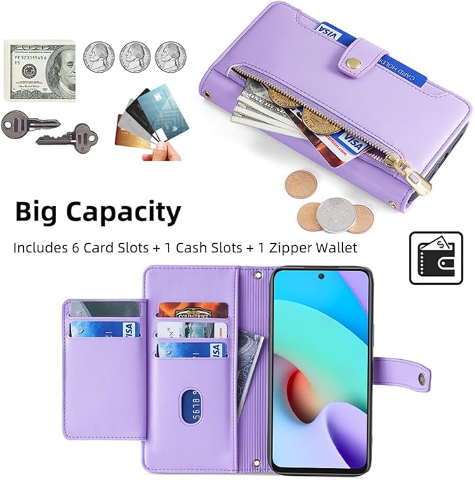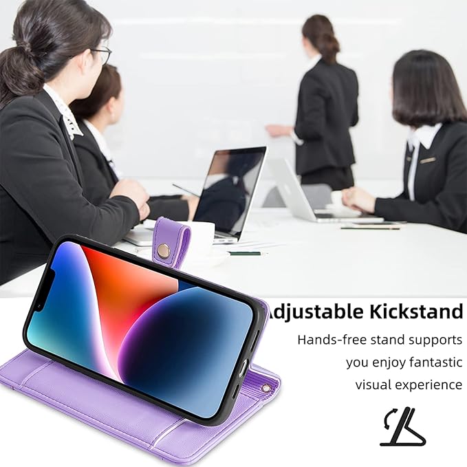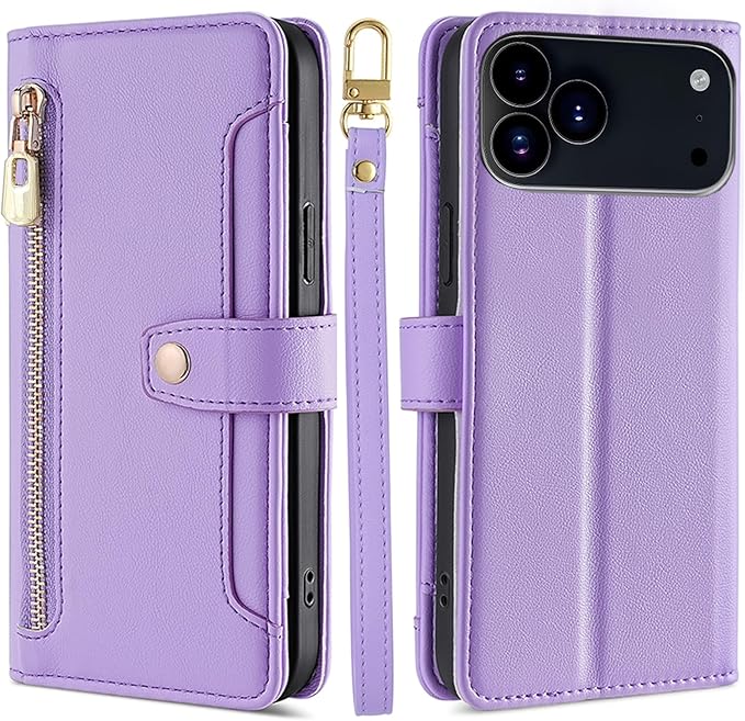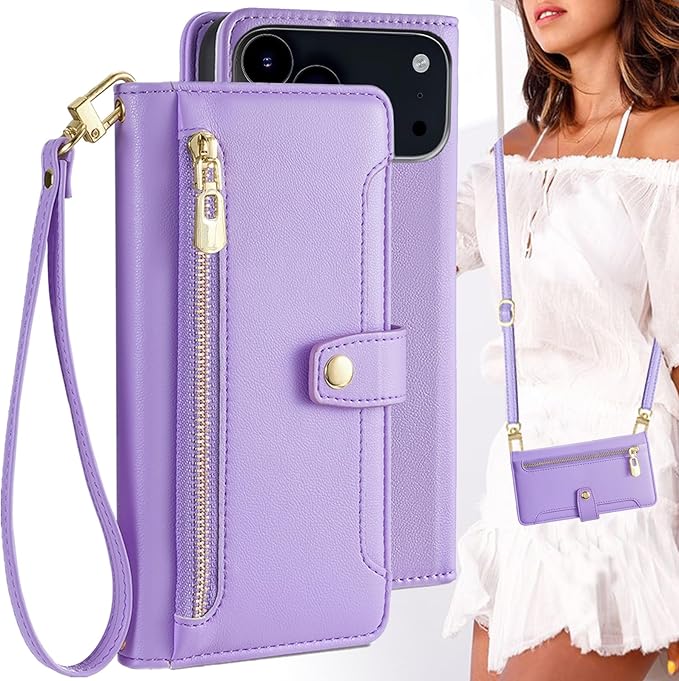 BonwFzin iPhone 17 Pro MAX ケース 手帳型 ショルダー 適用 アイホン17プロマックス ショルダーケース 【 ストラップ 長+短 2本】 IPhone17ProMax スマホケース バッグ マグネット スナップ 肩がけ 首掛け 斜め掛け ファスナー ストラップ付き スタンド カード入れ パープル