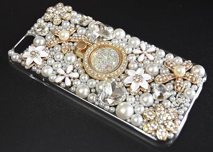 厳選したラインストーン、クリスタルなどのパーツを使用し、 1点1点ハンドメイドで丁寧に制作させて頂いております。さらに宝石のようなエアバックスタンドを使用のため、邪魔なく便利で、とても豪華で素敵なケースです。