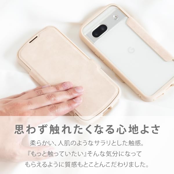 上質なPUレザー、ソフトTPUの柔らかな質感と透き通るクリアTPU を組み合わせた ハイブリッド型手帳型ケース。北欧デザインを意識したやんわりと した色使いとカメラホールの縁までカバーするオリジナルデザイン