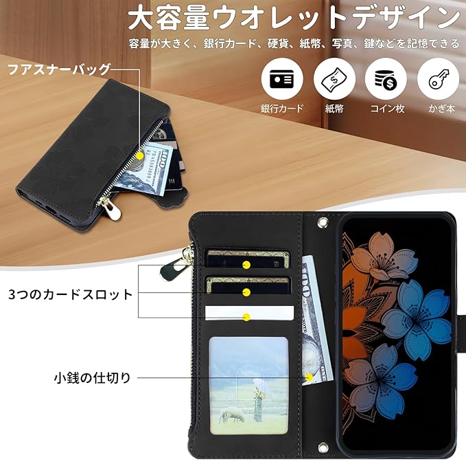 【対応機種】:と互換性のある『Google Pixel 9a(約6.3インチ)』ファッションのセンスを強調、シンプルと美しい桜パターンのデザインですが、高級感のゴールド・ジップで華やかなイメージに。ファッションに合わせて使えます。高級感が溢れ。ご注文の前に、色、互換性のあるモデルをご確認ください。