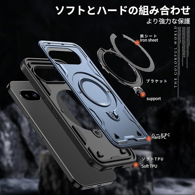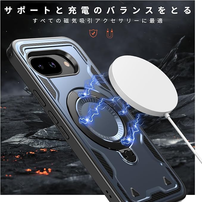 Google Pixel 9a 用 ケース 耐衝撃 スタンド付き Magnetic対応 グーグルピクセル9a カバー リング TPU+PC ワイヤレス充電 米軍MIL規格取得 スタンド機能 (ブルー)117-PX9A-09TS