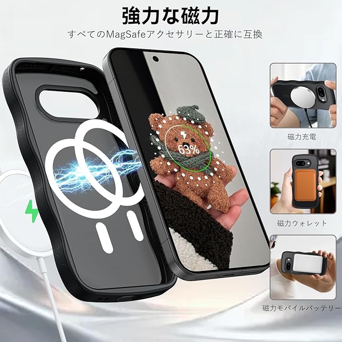 GUAGUA google pixel 9a ケース MagSafe対応 ウェーブ グーグルピクセル9a ケース かわいい ソフトうねうね 滑り止め 人気 韓国 おしゃれ マグネット 車載ホルダー対応 半透明 指紋防止 耐衝撃 かわいい グーグルピクセル9a カバー