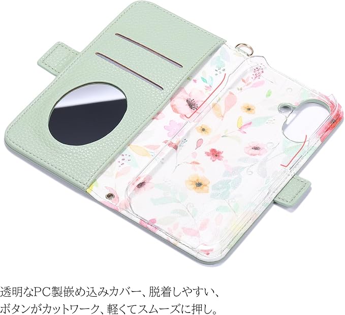 商品のお色はお客様のPC環境によって多少色合い、見え方など違ってまいります。またおスマホの機種によってカードホルダーとカードポケットのサイズは異なりますのでご了承下さいますようお願いします。