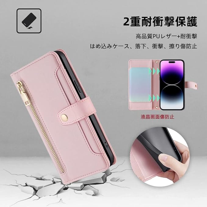 【収納力抜群】: カードポケットが5個収納可能、サイドポケットが1個、チャックポケット1個、内側に2つのカードスロット、名刺、収納、外側にカードや小銭を収納できるジップ付き小銭入れを装備し、大切なカードなどを守ります。美観と実用性を兼ね備えた、とても便利でスタイリッシュなウォレットケースです。