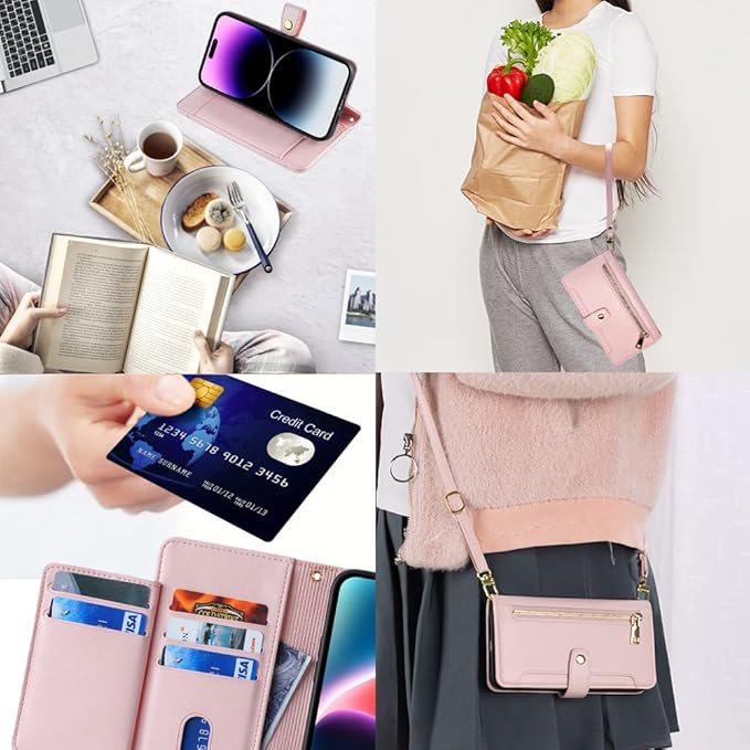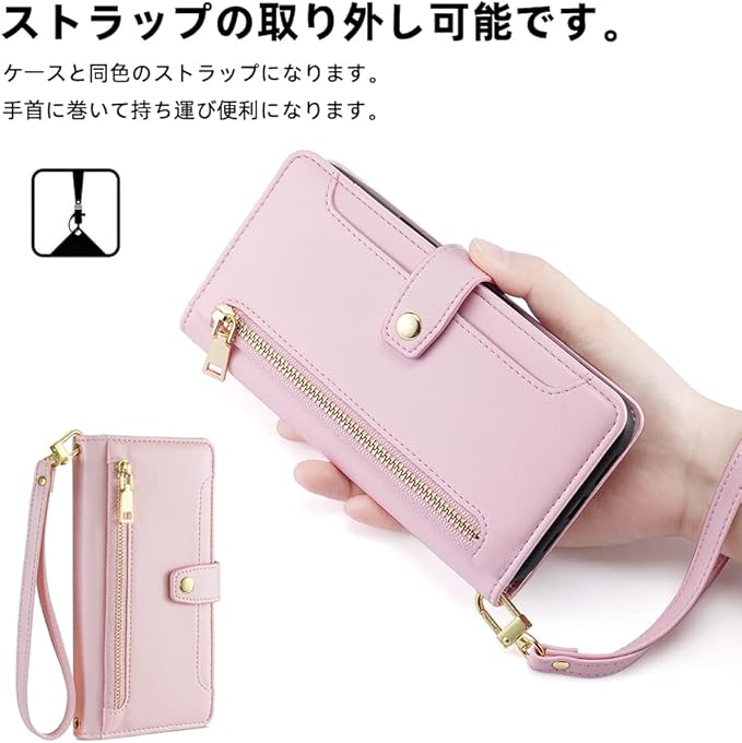 For Google Pixel 9 ケース 手帳型 Google Pixel 9 カバー【COKOVI】グーグル ピクセル 9 スマホケース スタンド機能 財布型 カードホルダー付き 耐衝撃 高級PUレザー 御洒落 女性 可愛い おしゃれ サイドマグネット ショルダーストラップ 肩掛け 首掛け付き チャックポケット付き (ピンク)