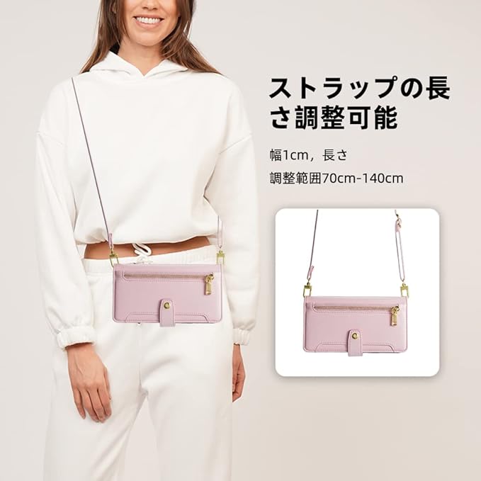 【ハンドストラップとショルダーストラップ付き】: 当ケースにはハンドストラップとショルダーストラップ/ 肩掛けストラップが配置されており、長さ調節可能なショルダーストラップで、手持ちや肩掛けが可能です。ショルダーストラップの長さは簡単に調整できます。用途に合わせて自由に長さを調整できます。特にポケットがない服が多いので、ストラップがあるとスマホをなくす心配もなく、両手が空くので首からかけられるのが便利です。ハンドバッグを持たずに、どこにでも出かけられる贅沢を味わうことができるのです。ショルダーストラップは取り外し可能で、自由に外していつでも着用感を調整できます。
